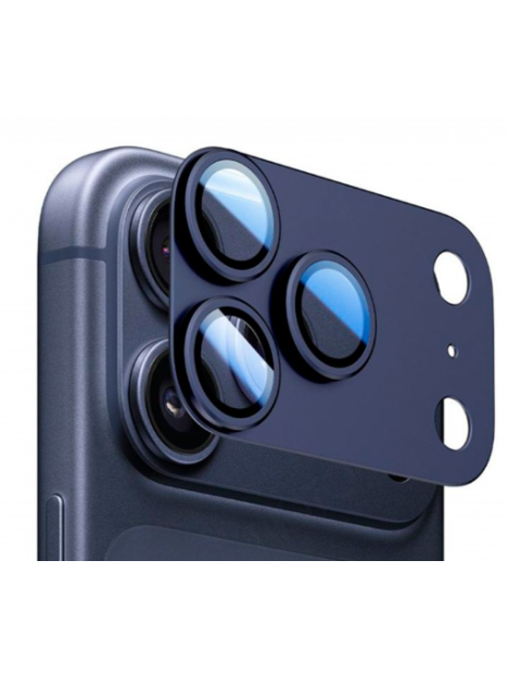CRISTAL PROTECTOR DE METAL PARA CAMARA DE iPHONE 17 PRO MAX COMPLETO COLOR: AZUL OSCURO