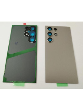 Tapa trasera o tapa bateria gris para Samsung Galaxy S24 Ultra S928 con lente de camara