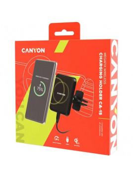 CARGADOR INALAMBRICO PARA COCHE CON SOPORTE MODO PINZA PARA EL AIRE ACODICIONADO CON POTENTE IMAN POTENCIA 15W MAX MARCA: CANYON