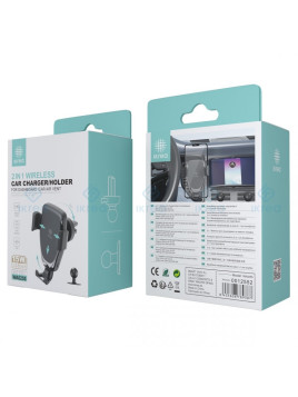 CARGADOR INALAMBRICO PARA COCHE CON SOPORTE 360º MODO PINZA PARA EL AIRE ACODICIONADO 15W MAX 2A COLOR: NEGRO MARCA:RIXUS