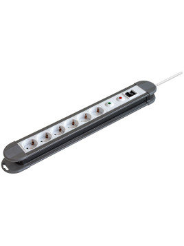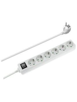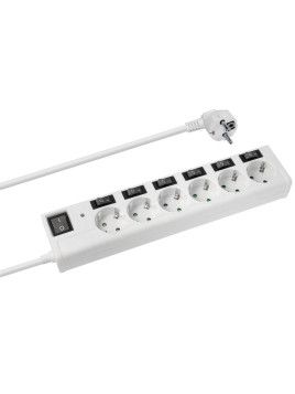 Regleta de 1E:6S Schuko con interruptor y protección