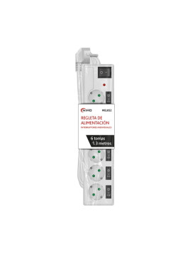 REGLETA DE ALIMENTACIÓN SCHUKO 1E:6S + 2 USB 2.1A LONGITUD 1.5M MARCA: NIMO