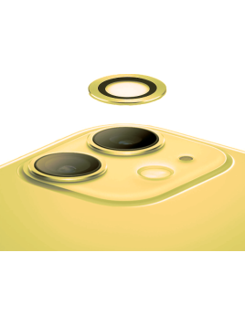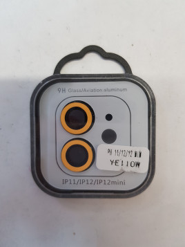 CRISTAL PROTECTOR DE METAL PARA CAMARA DE IPHONE 11 / 12 / 12 MINI COLOR: AMARILLA FLUORESCENTE (BRILLA EN LA OSCURIDAD)