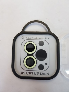 CRISTAL PROTECTOR DE METAL PARA CAMARA DE IPHONE 11 / 12 / 12 MINI FLUORESCENTE (BRILLA EN LA OSCURIDAD)