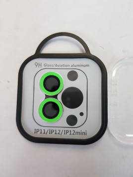 CRISTAL PROTECTOR DE METAL PARA CAMARA DE IPHONE 11 / 12 / 12 MINI COLOR: VERDE FLUORESCENTE (BRILLA EN LA OSCURIDAD)