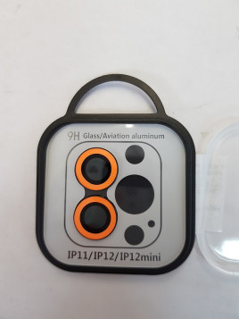 CRISTAL PROTECTOR DE METAL PARA CAMARA DE IPHONE 11 / 12 / 12 MINI COLOR: NARANJA FLUORESCENTE (BRILLA EN LA OSCURIDAD)