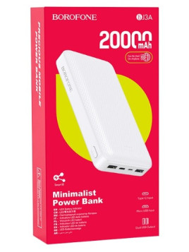POWER BANK CON ENTRADA USB-C Y MICRO USB Y SALIDA DE 2 USB-A 10.000mAh COLOR: BLANCO MARCA: BOROFONE MODELO: BJ3A
