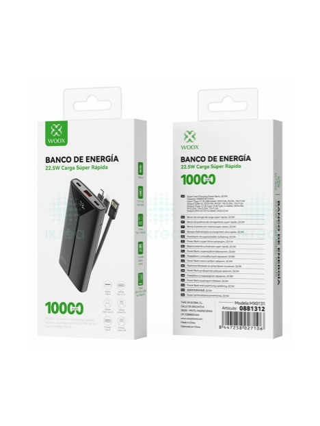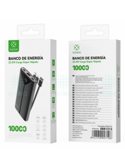 POWER BANK CON PANTALLA LED CAPACIDAD 10.000mAh/ 22.5 SALIDA (CABLES INCLUIDOS) COLOR: NEGRA MARCA: WOOX
