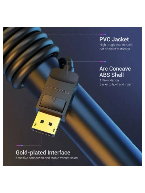 CABLE DISPLAYPORT (MACHO) A DISPLAYPORT (MACHO) 1.2 4K LONGITUD: 5 METROS COLOR: NEGRO MARCA: VENTION