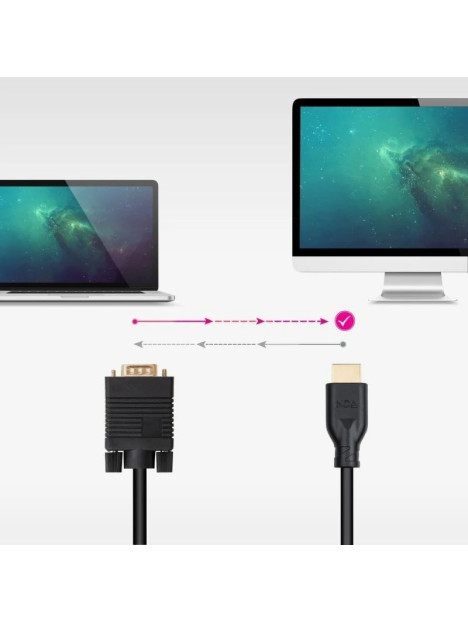 CABLE CONVERSOR ADAPTADOR VGA (MACHO) A HDMI (MACHO) 8K LONGITUD: 1.8 METROS MARCA: NANOCABLE