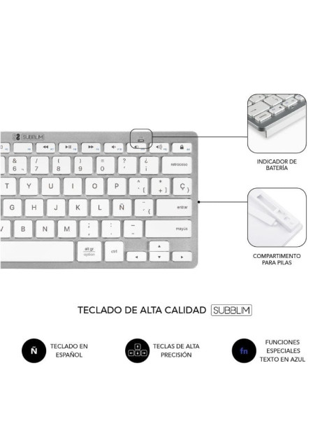 - El Teclado Inalámbrico Subblim soporta 3 dispositivos mediante dos canales con