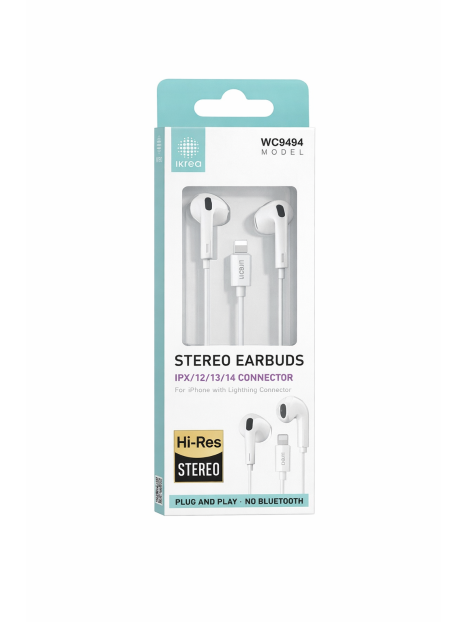 AURICULARES CON CABLE A LIGHTNING CON MICROFONO Y CONTROL DE VOLUMEN COLOR: BLANCO MARCA: IKREA