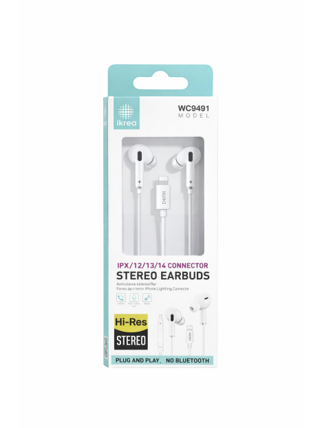 AURICULARES DE ALMOHADILLAS CON CABLE A LIGHTNING CON MICROFONO Y CONTROL DE VOLUMEN COLOR: BLANCO MARCA: IKREA