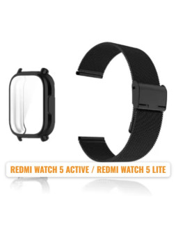 CORREA DE METAL + FUNDA PROTECTORA PARA REDMI WATCH 5 ACTIVE / REDMI WATCH 5 LITE COLOR: NEGRO