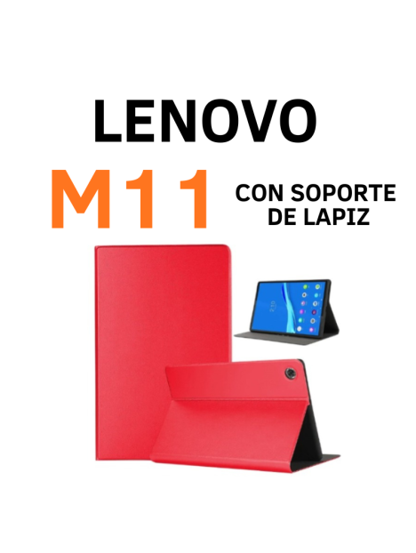 FUNDA CON TAPA TRASERA Y SOPORTE PARA LAPIZ PARA LENOVO M11 COLOR: ROJO