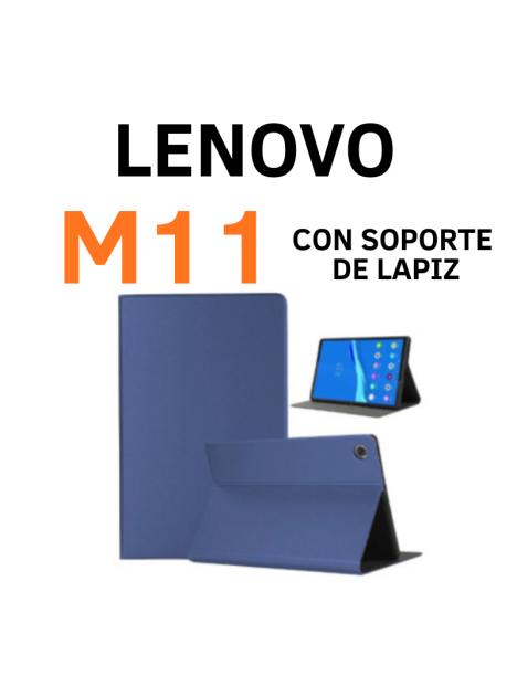 FUNDA CON TAPA TRASERA Y SOPORTE PARA LAPIZ PARA LENOVO M11 COLOR: AZUL MARINO
