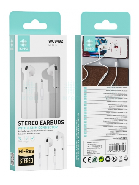 AURICULARES CON CABLE A JACK 3.5MM CON MICROFONO Y CONTROL DE VOLUMEN COLOR: BLANCO MARCA: IKREA