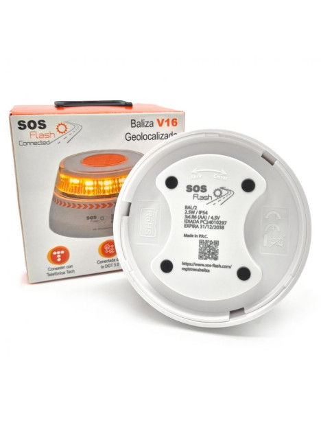 Luz baliza de emergencia para coche SOS Flash V16 Connected IoT BAL/2/ Homologada/ Base Imantada/ Geolocalizable/ Funciona a Pilas