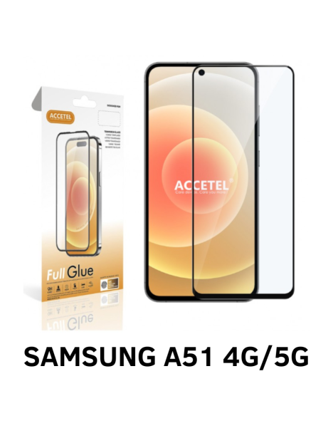 SAMSUNG A51 4G PROTECTOR CRISTAL TEMPLADO COMPLETO FULL GLUE MARCA: ACCETEL