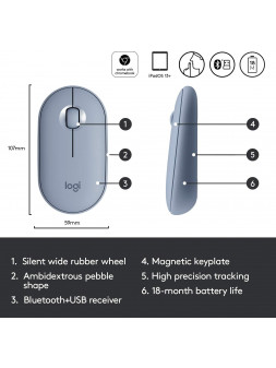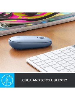 Logitech Pebble M350 - Ratón inalámbrico con Bluetooth o USB, silencioso, delgado, con clic silencioso para iPad, portátil, portátil, PC y Mac, color azul.