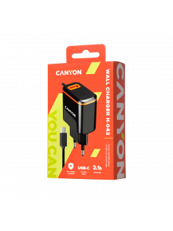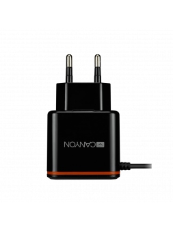 Cargador USB-A2.1A + USB-C negro y naranja 2.1A 5V 1xUSB autodetección de amperaje 1m CHA042BO marca Canyon