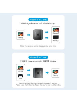 Gracias al interruptor bidireccional HDMI de 2 puertos de Vention, podrá mostrar la imagen de dos fuentes en un monitor y alternar entre ellas con solo presionar un botón. De esta manera, puede conectar fácilmente, por ejemplo, una computadora y una consola de juegos a un monitor.