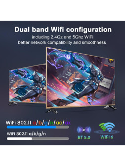 【5G WIFI Excelente conectividad】 Esta caja de TV Android está equipada con IEEE 802.11 A/ B/ G/ N/ AC/AX 2.4G/ 5G WiFi, Bluetooth 5.0 y 100M Ethernet, que proporciona una conexión más estable y una velocidad excelente. También tiene un puerto de ranura USB / Micro SD, ayuda a conectar dispositivos externos. La caja es fácil de instalar y usar, simplemente conecte la fuente de alimentación, conecte el decodificador de cables HD y la conexión Wi-Fi / Ethernet y puede usarlo