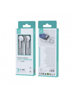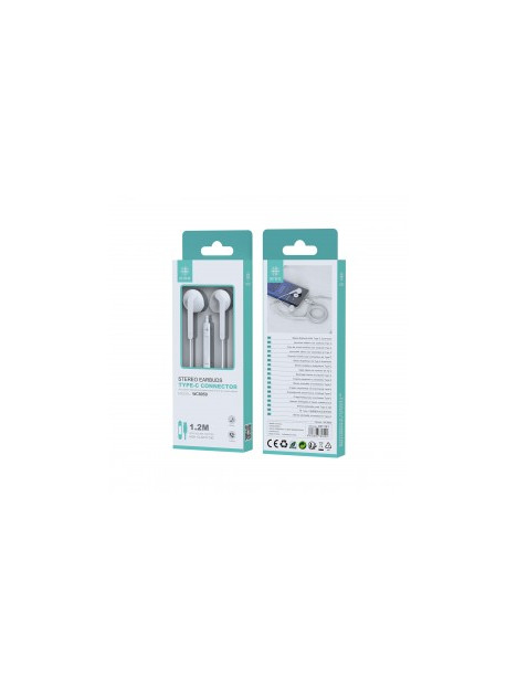 AURICULAR CON CABLE A TIPO-C CON BOTON DE VOLUMEN Y MICROFONO COLOR: BLANCO LONGITUD 1.2M MARCA: IKREA MODELO: WC8959